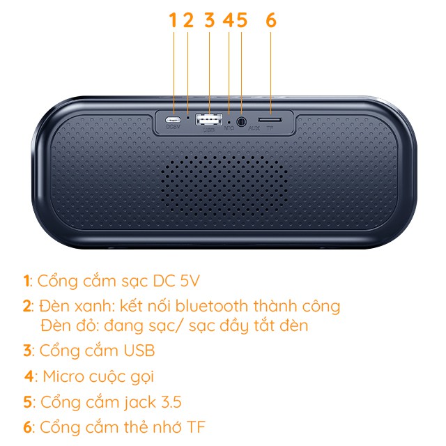✔ Kết nối đa dạng: các thiết bị hỗ trợ Bluetooth như Smartphone, Laptop, SmartTV,MP3… Hỗ trợ sử dụng USB/Thẻ nhớ/Kết nối PC, Laptop qua Jack cắm 3.5mm.