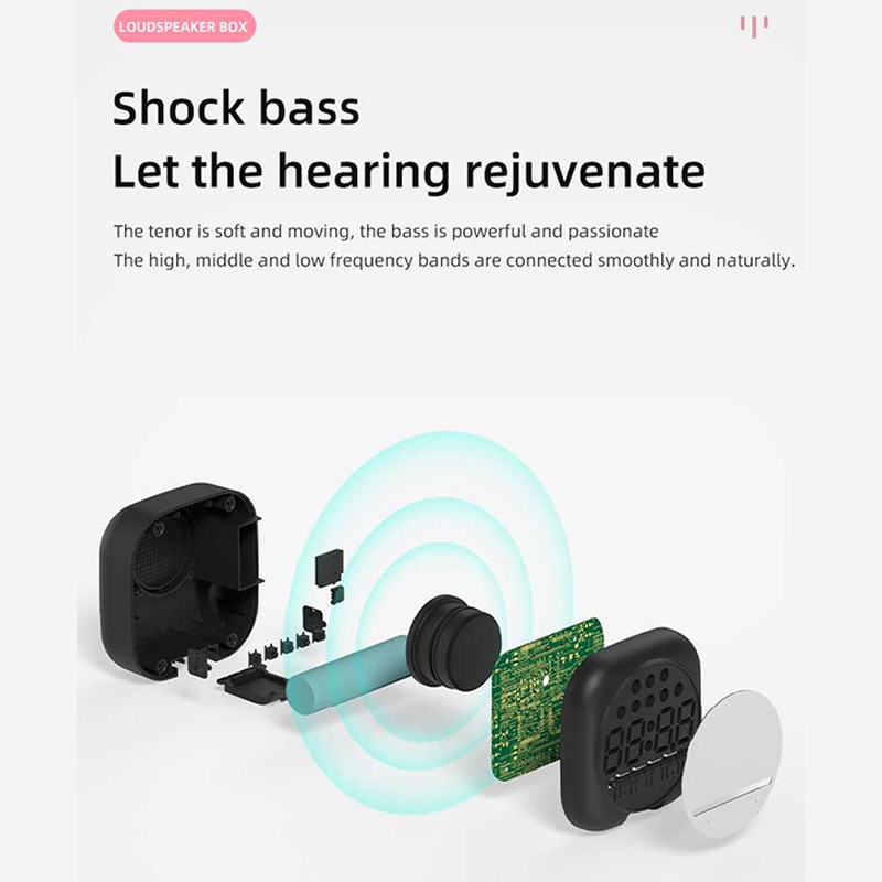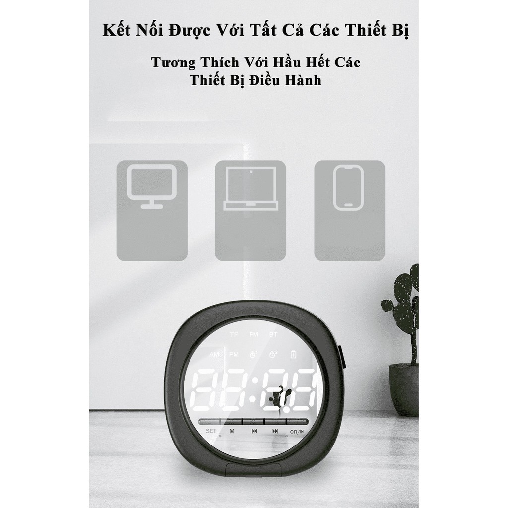 + Âm thanh từ loa to rõ, chắc âm, bass lớn. Khi sở hữu sản phẩm này vừa có một chiếc loa nhỏ gọn, một chiếc đồng hồ hiển thị thời gian, nhiệt độ và cả một chiếc gương để trang điểm.