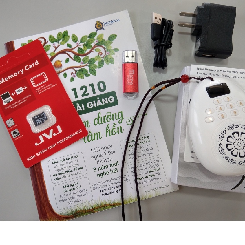 - Có phím chức năng chuyển đổi từ chế độ nghe bài niệm cài sãn trong máy hoặc nghe bài giảng theo thẻ nhớ.