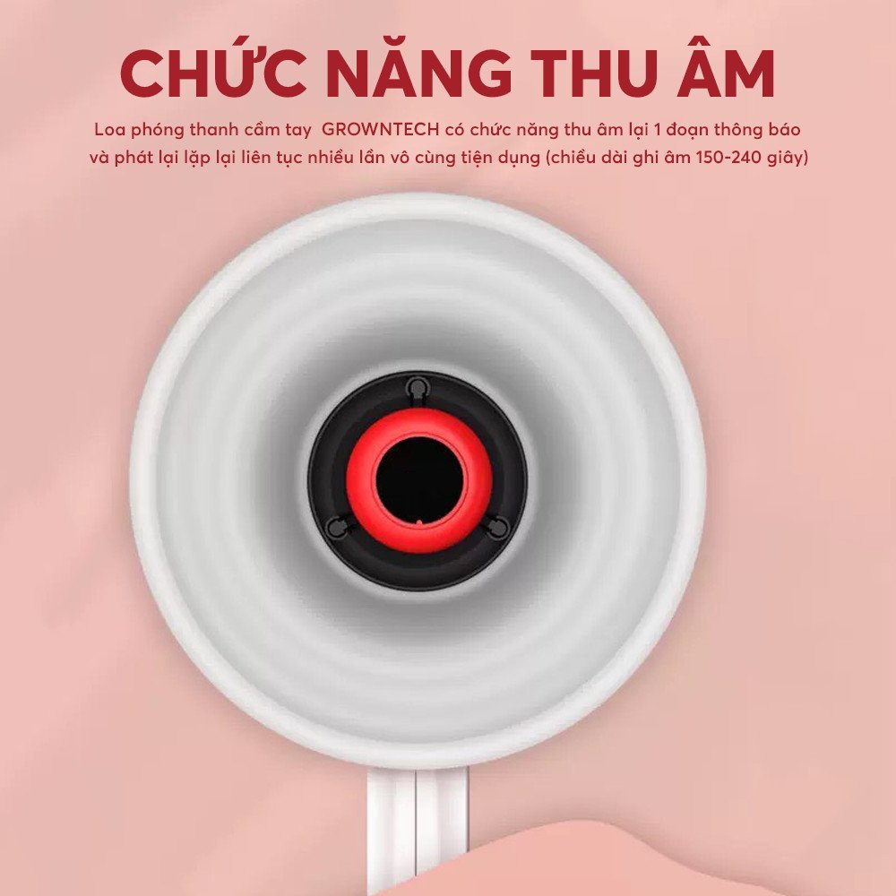 Loa phóng thanh cầm tay có chức năng thu âm lại 1 đoạn thông báo và phát lại lặp lại liên tục nhiều lần vô cùng tiện dụng