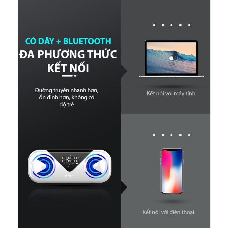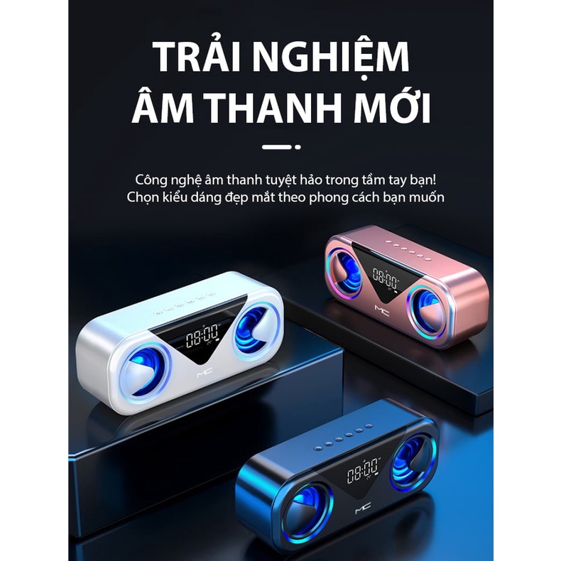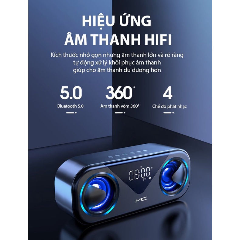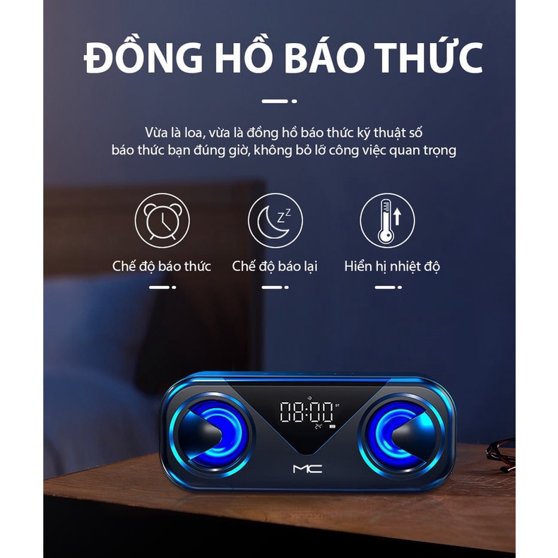 Loa Sạc Bluetooth Không Dây MC H9, Loa Kép, Báo Thức, Hiển Thị Nhiệt Độ, Đèn LED
