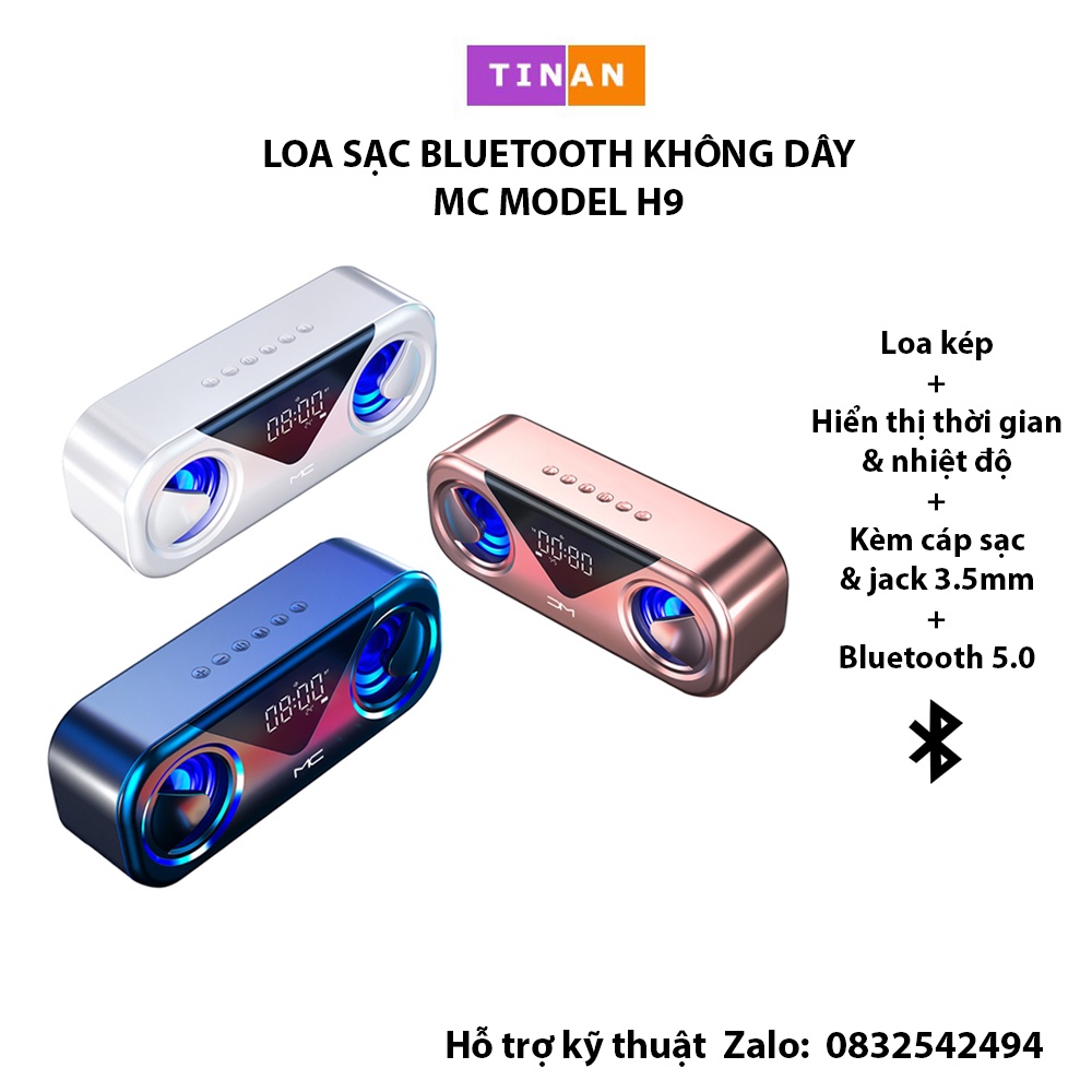 Thiết Bị Âm Thanh > Dàn âm thanh > Loa || [Mã 44ELSALE2 giảm 7% đơn 300K] Loa Sạc Bluetooth Không Dây MC H9, Loa Kép, Báo Thức, Hiển Thị Nhiệt Độ, Đèn LEDCòn hàng