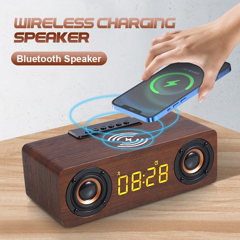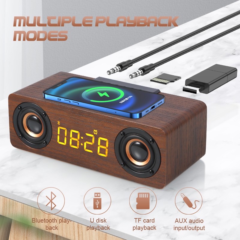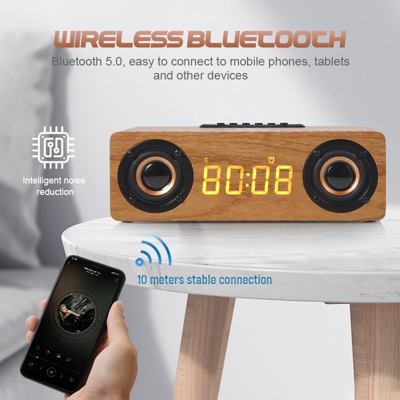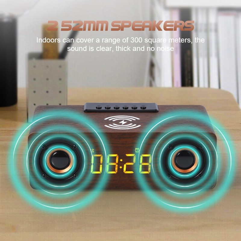 Loa Sạc Không Dây Bluetooth 5.0 Loa Siêu Trầm Di Động Bằng Gỗ HiFi,Hỗ Trợ Đồng Hồ Báo Thức + Đĩa U + Chức Năng Thẻ TF