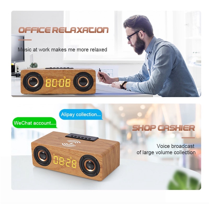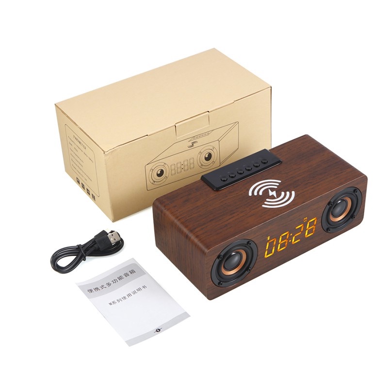 Thiết Bị Âm Thanh > Dàn âm thanh > Loa || Loa Sạc Không Dây Bluetooth 5.0 Loa Siêu Trầm Di Động Bằng Gỗ HiFi,Hỗ Trợ Đồng Hồ Báo Thức + Đĩa U + Chức Năng Thẻ TFCòn hàng
