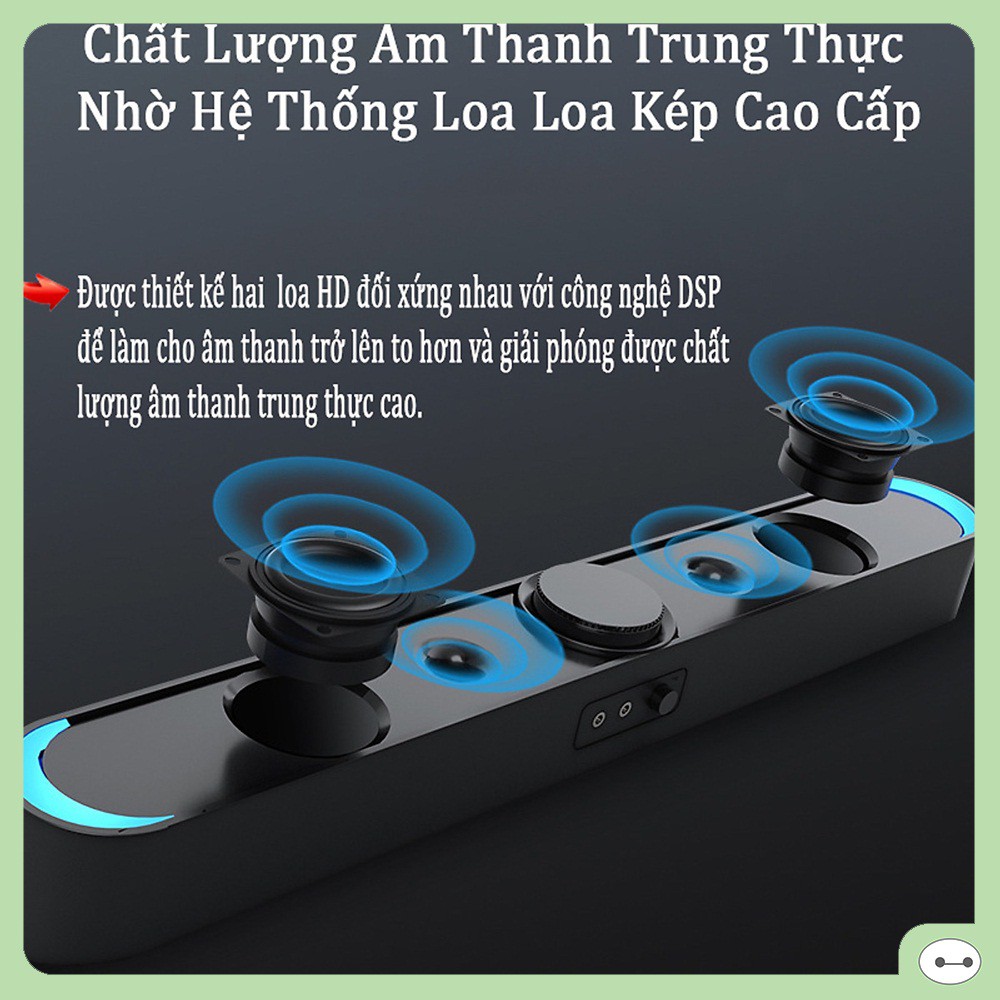 Thiết kế dài với đèn LED BLUE cực kì bắt mắt, cực phù hợp với góc làm việc hoặc gamingÂm thanh nổi trội với dải âm thanh dài