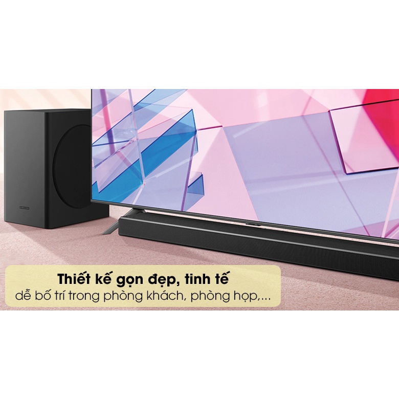 - Công nghệ Q-symphony tạo nên âm thanh vòm hoàn hảo khi đồng bộ loa với TV Samsung