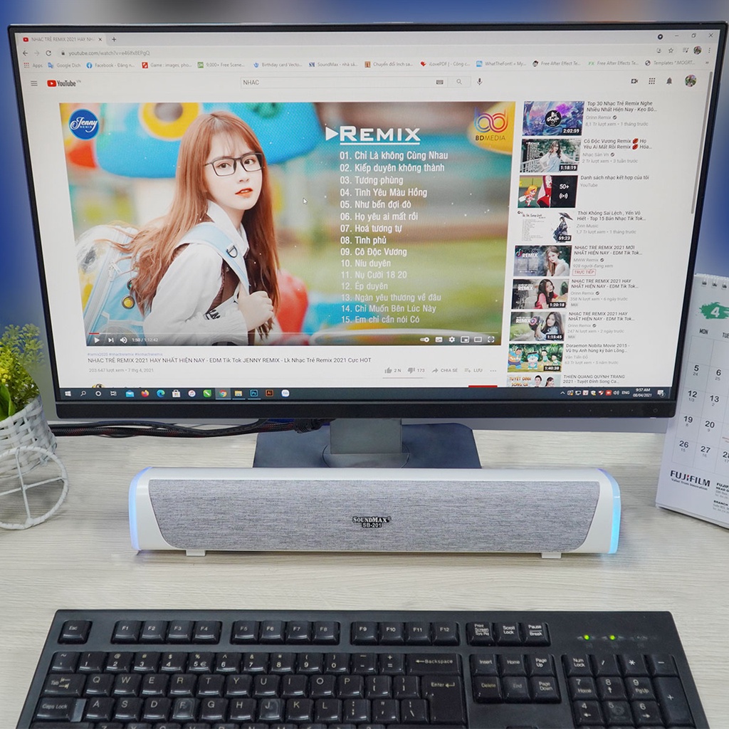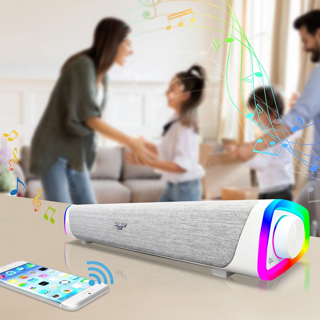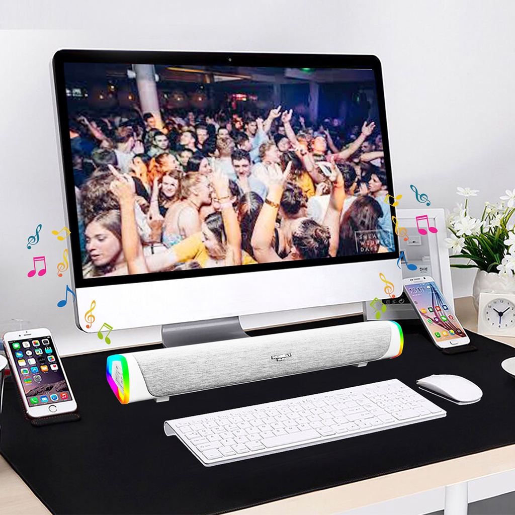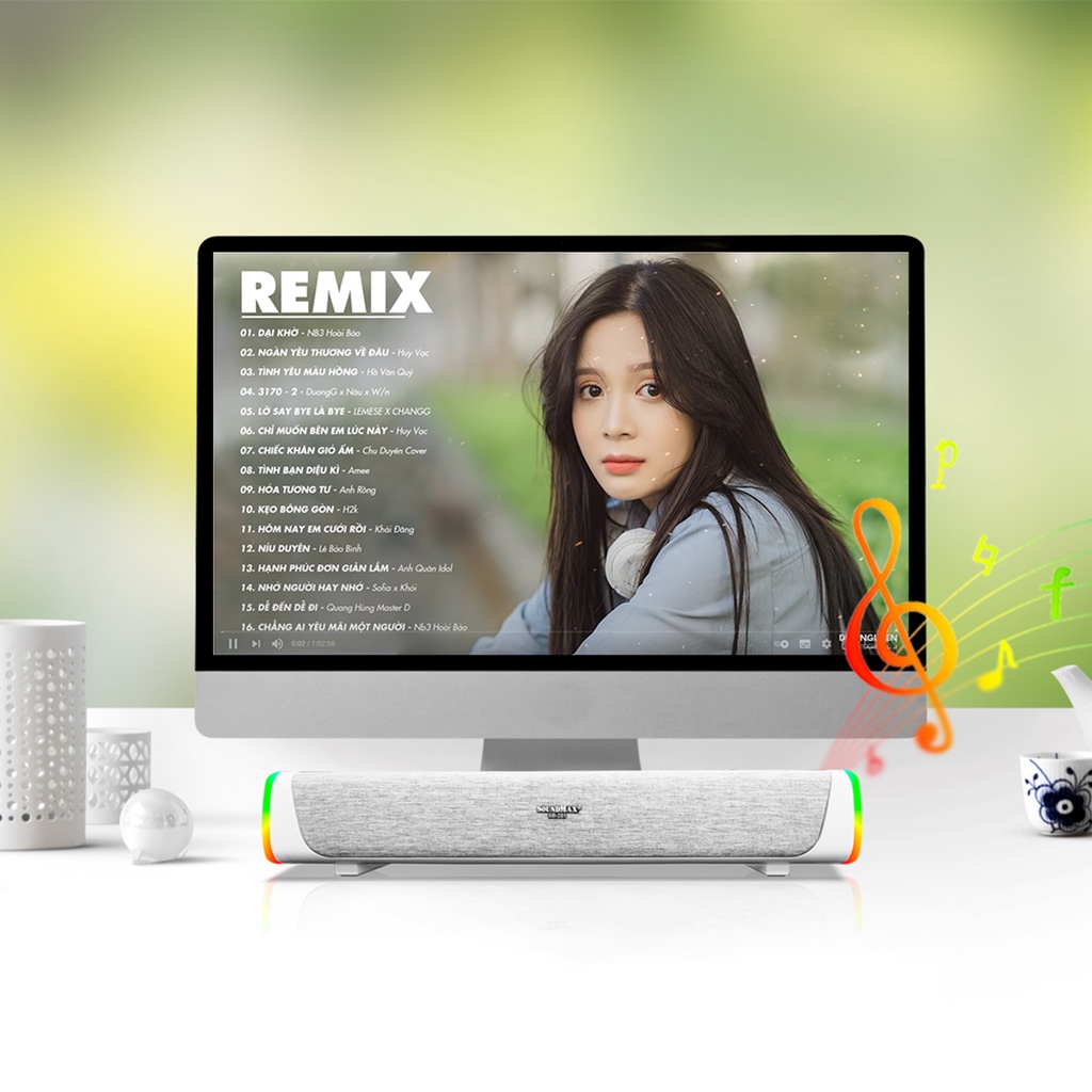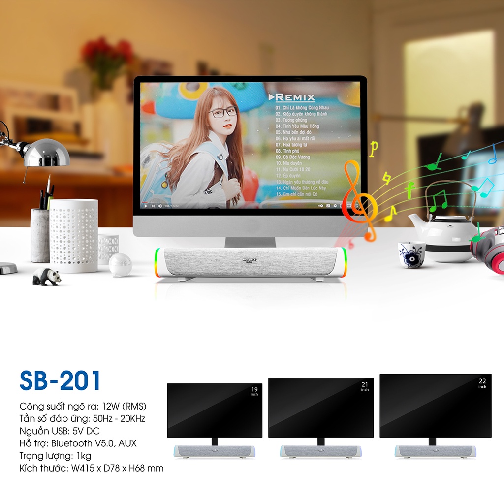 - Hệ thống loa soundbar 2.0,cho âm thanh trong trẻo, rõ ràng nghe được nhiều thể loại nhạc.