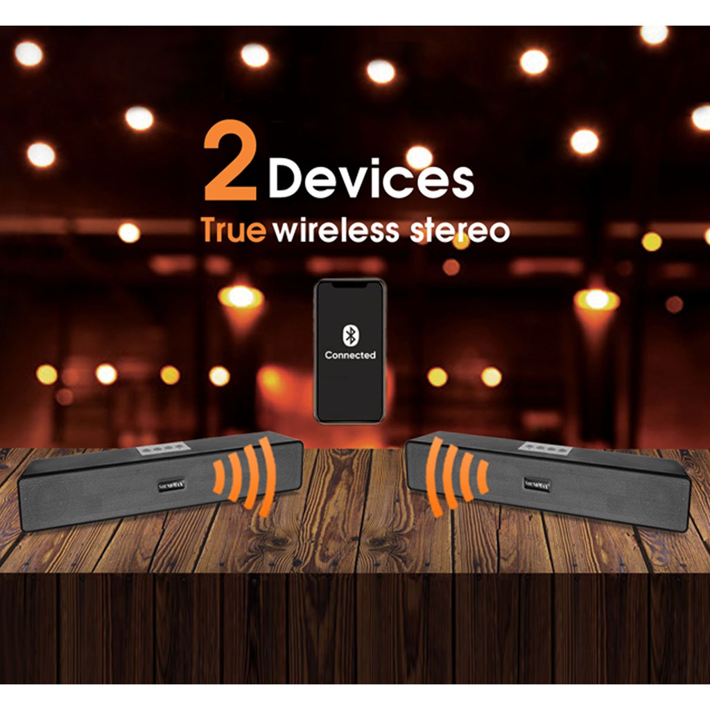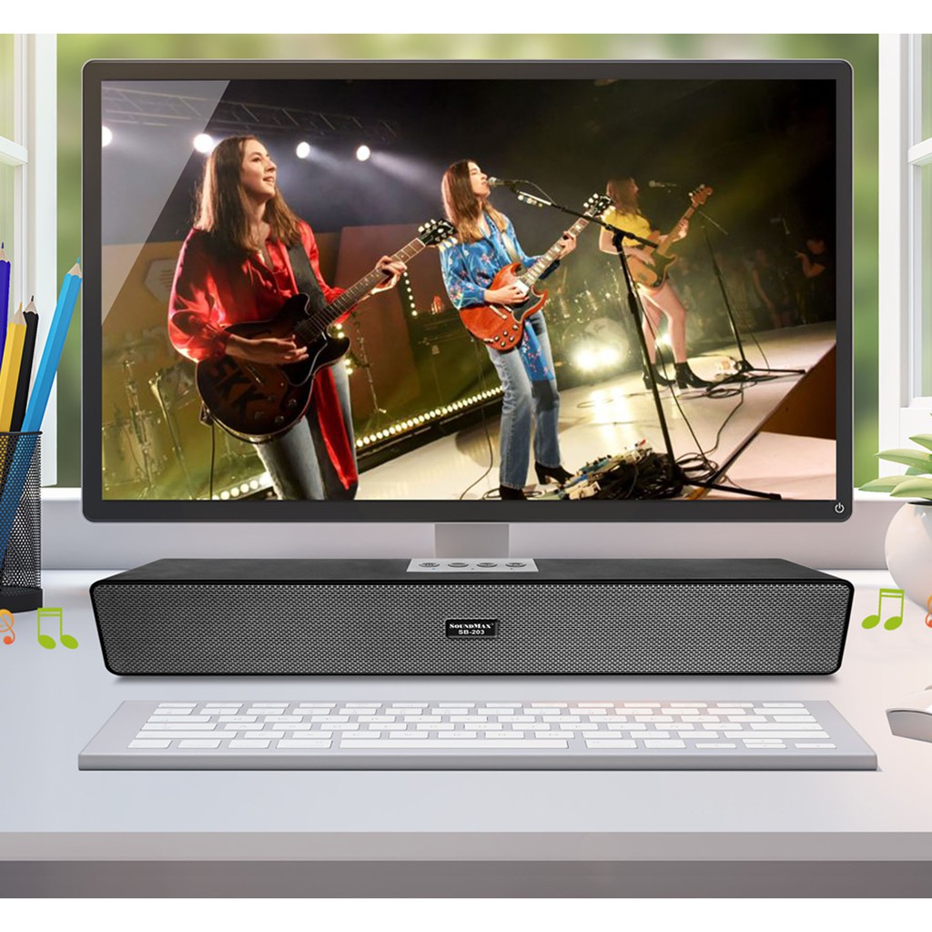 Tính năng sản phẩm- Hệ thống loa soundbar 2.0, cho âm thanh trong trẻo, rõ ràng nghe được nhiều thể loại nhạc.- Hỗ trợ kết nối True Wireless Stereo- Sử dụng cho các loại máy tính như: máy tính bàn (PC), Máy tính xách tay (Laptop)...- Hỗ trợ chơi nhạc qua thẻ nhớ TF, USB, AUX, Bluetooth 5.0- Kích thước nhỏ gọn, phù hợp để mang đi hay di chuyển khi cần thiếtTên sản phẩm: SB-203