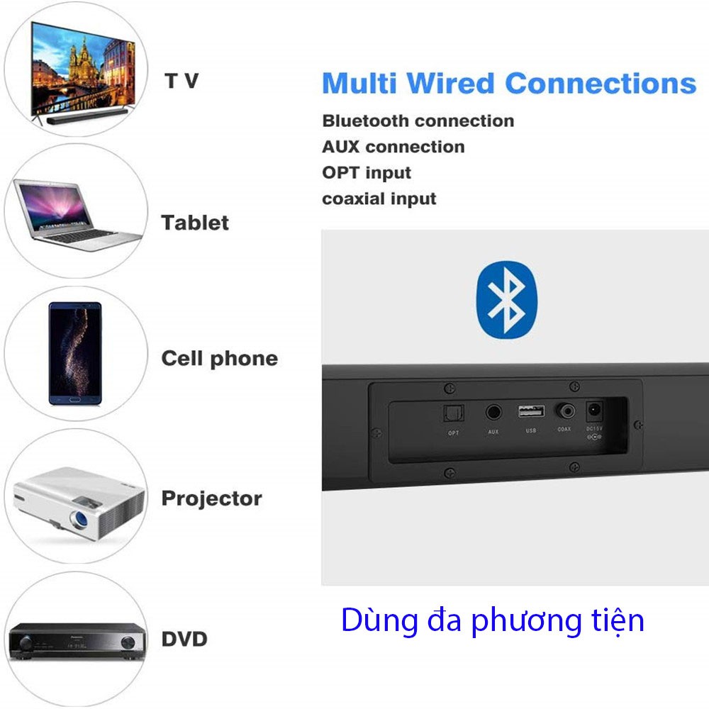 * Kết nối đa phương tiện : tivi, điện thoại ,tivi box, máy tính bảng, laptop, máy chiếu chiếu, qua bluetooth.