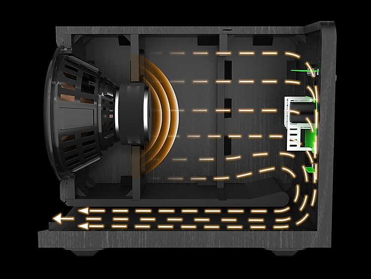 Với công nghệ màng loa độc quyền, chiếc sub này có khả năng giảm thiểu nhiễu âm và méo tiếng khi loa hoạt động ở cường độ lớn liên tục, đồng thời giảm được các tác động từ bên trong thùng loa lên màng loa, tăng khả năng tái tạo chất âm bass khỏe, chính xác.