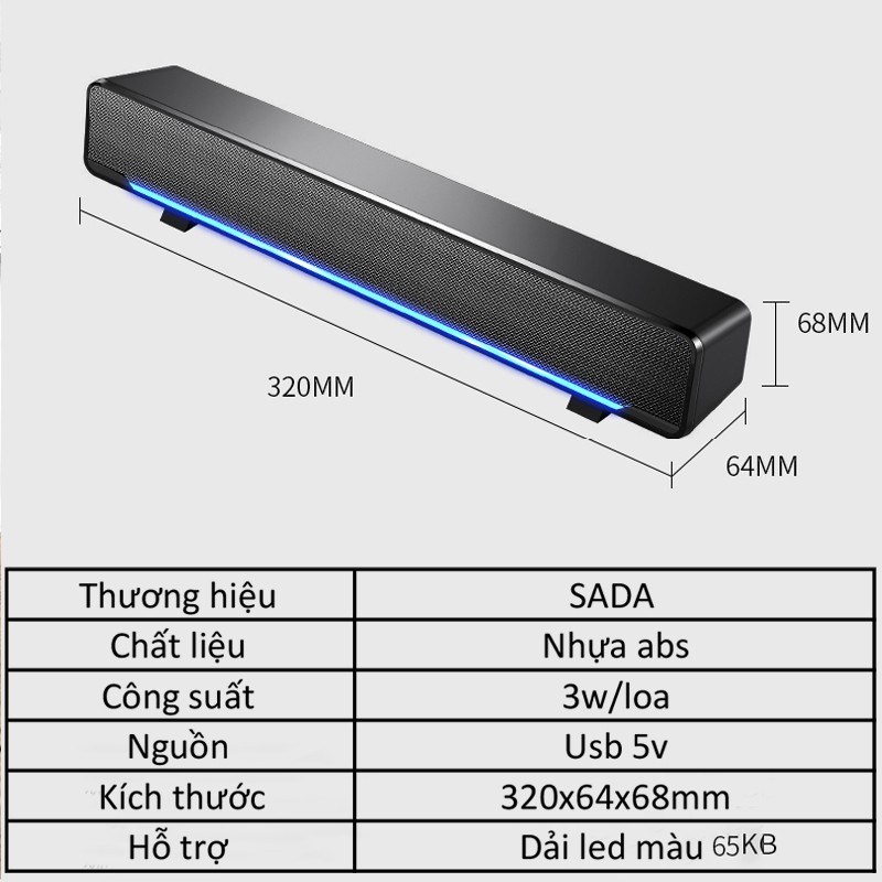 Giới thiệu Loa Thanh Soundbar, Vi Tính SADA V-196T-2020, Dải Led Màu Ấn Tượng, Âm Thanh Siêu Trầm - Loa Máy Tính PC, Tivi