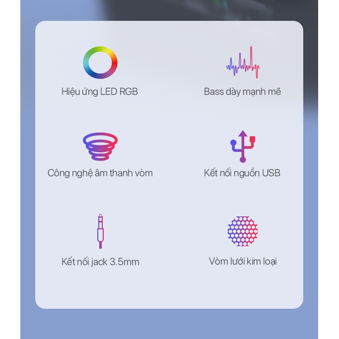 Kết nối: cổng kết nối 3.5mm đầu USB dùng để kết nối nguồn