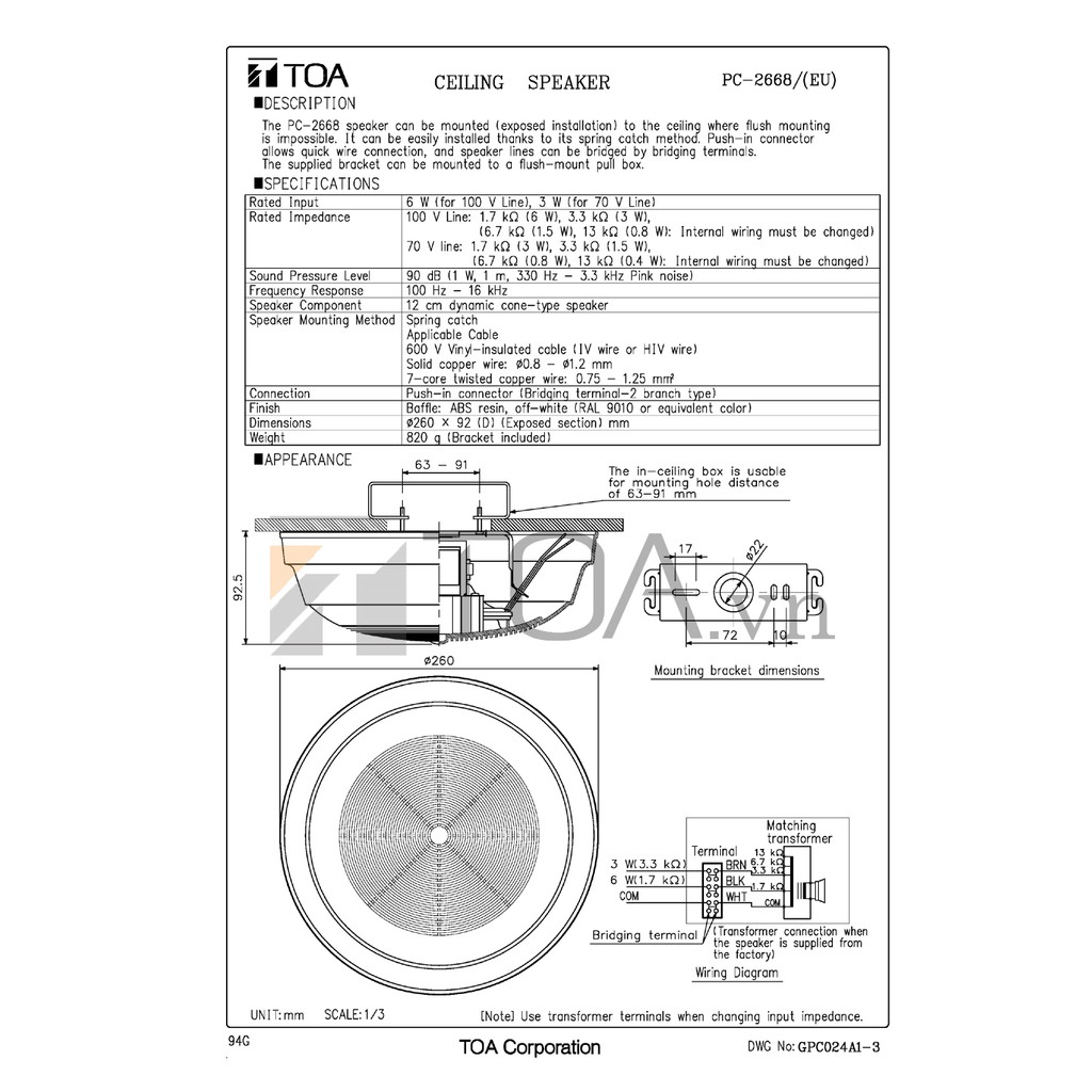 Thiết Bị Âm Thanh > Dàn âm thanh > Loa || [Mã ELHACE giảm 4% đơn 300K] Loa Trần Gắn Nổi TOA PC-2668Còn hàng