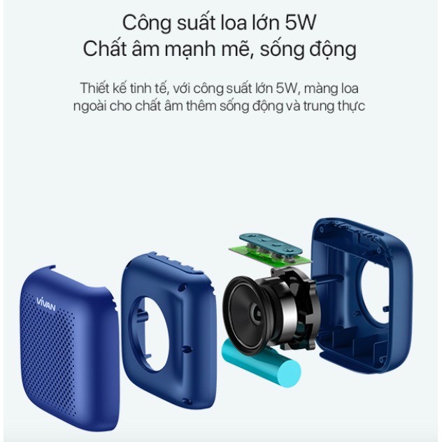 Thiết Bị Âm Thanh > Dàn âm thanh > Loa || Loa TWS Bluetooth 5.0 VIVAN Chống Nước IPX5 Công suất 5W 1800mAh Playtime đến 10H -VS1-BH 1 năm 1 đổi 1 CHÍNH HÃNGCòn hàng