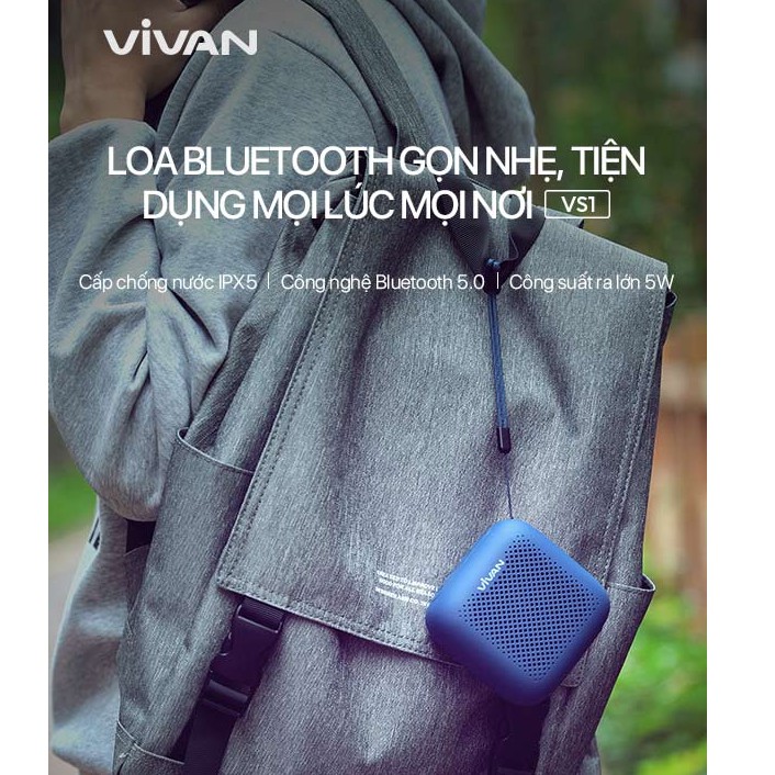 Thiết Bị Âm Thanh > Dàn âm thanh > Loa || Loa TWS Bluetooth 5.0 VIVAN VS1 Chống Nước IPX5 Công suất 5W 1800mAh Playtime đến 10HCòn hàng