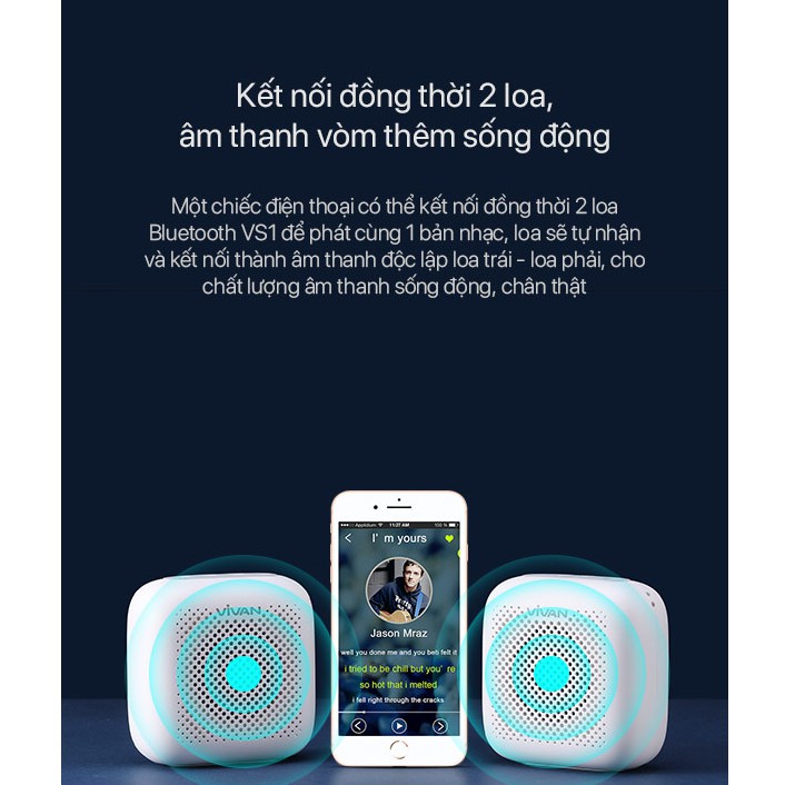 Có thể cùng lúc kết nối 2 loa Bluetooth VS1 với nhau. Âm thanh sống động, chân thật