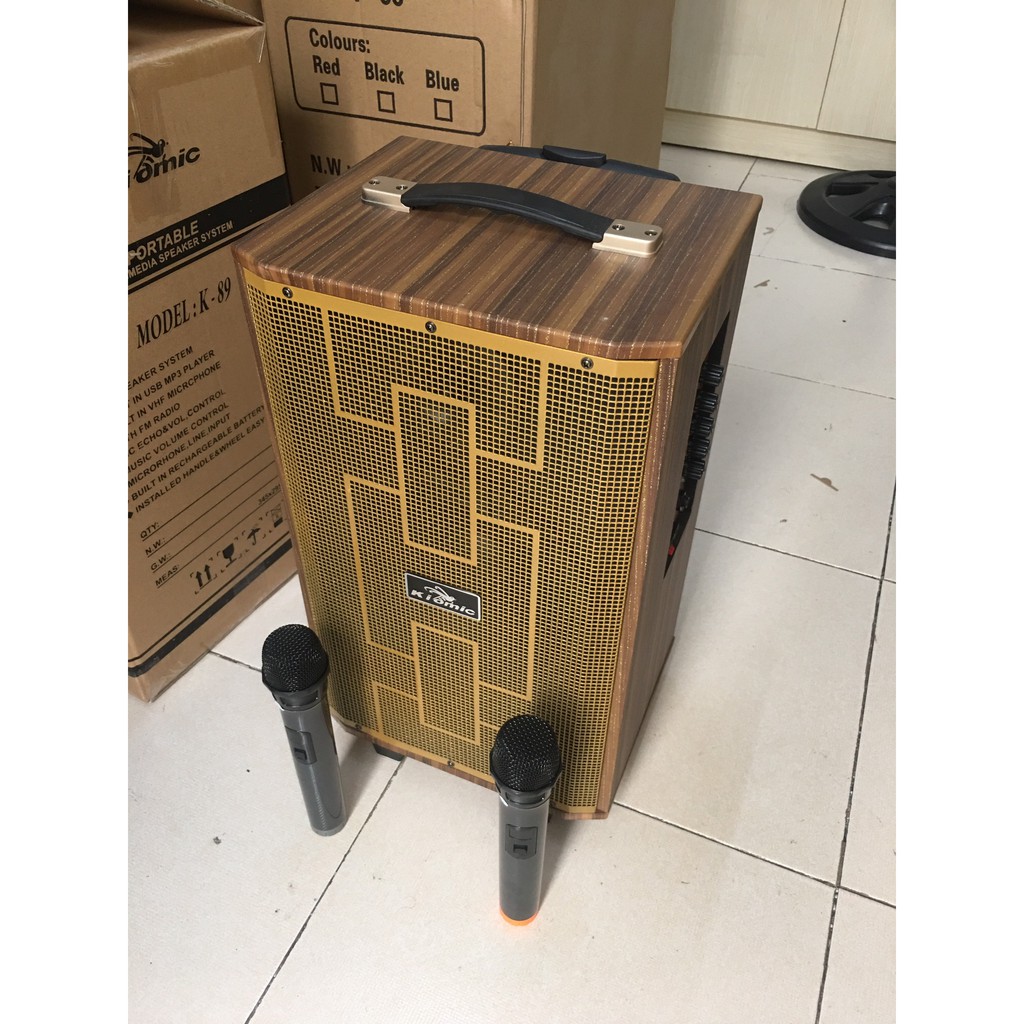K89 là mẫu loa thùng gỗ với thiết kế bass 2 tấc, vỏ gỗ xịn có vân hoa bóng cực đẹp. Đặc biệt, loa được trang bị 2 micro không dâyxịn từ các dòng loa temeisheng