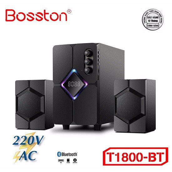 Thiết Bị Âm Thanh > Dàn âm thanh > Loa || Loa vi tính 2.1 kiêm Bluetooth USB thẻ nhớ Bosston T1800-BT 40W led RGB 7 màu, dùng nguồn 220V (Đen) - Hàng Chính HãngCòn hàng