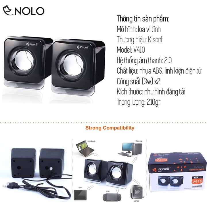 Giới thiệu Loa Vi Tính 2 Cái 2.0 Kisonli Model V410 Công Suất 3W x 2 Loa Nguồn USB 5V