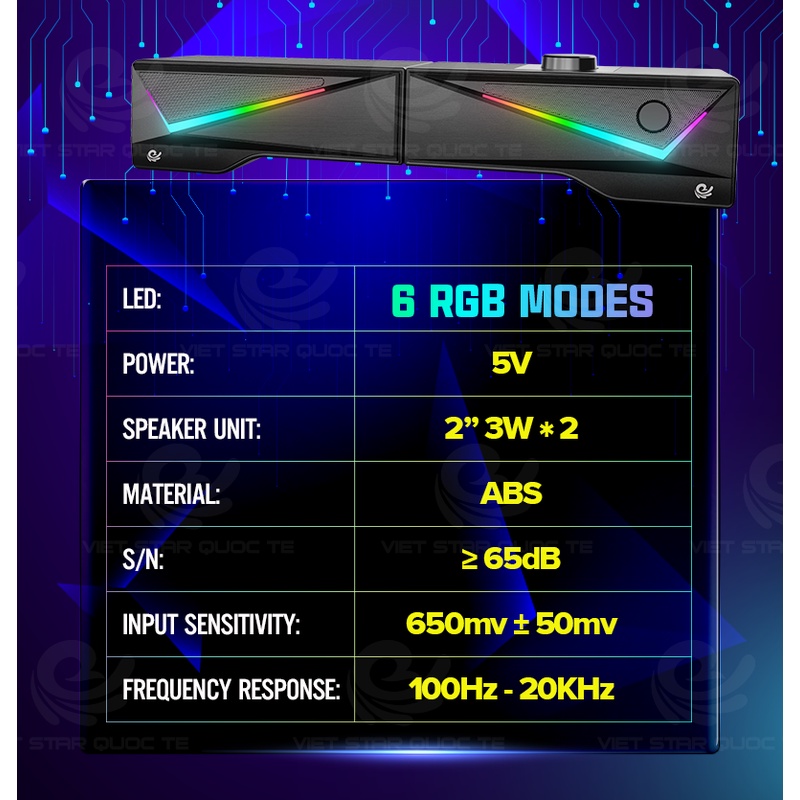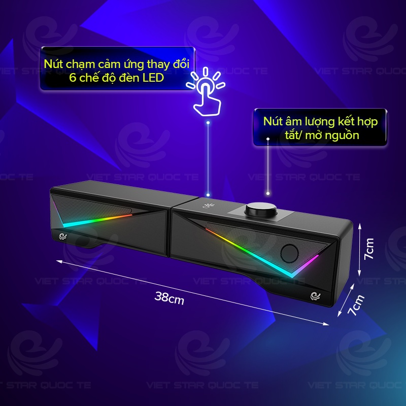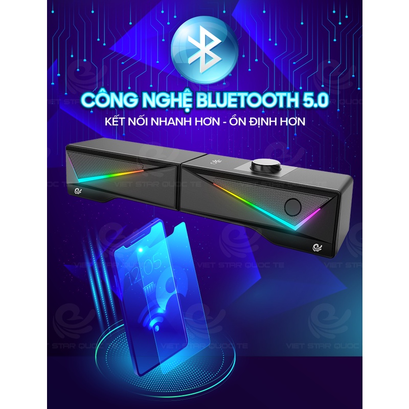 Loa máy tính- Loa Bluetooh để bàn VIET STAR VS167 - Nhựa cứng ABS-Hiệu ứng đèn LED 7 màu hình kim cương đổi màu liên tục- Hỗ trợ kết nối Bluetooh- Tháo rời 2 loa hoặc ráp thành 1 loa dài cực đẹp-Âm thanh 3D- Bảo hành 12 thángTHÔNG SỐ SẢN PHẨM