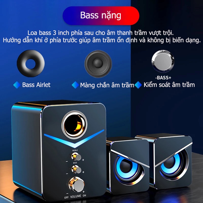 Loa Vi Tính Để Bàn MC D221 SUPER BASS Cực Đã Có LED Thiết Kế Nhỏ Gọn Âm Thanh Đỉnh Cao