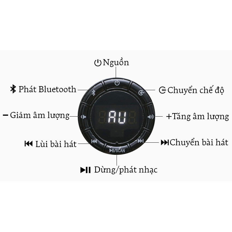 Phím điều khiển: Tăng/giảm âm lượngChỉnh TrebleChỉnh Bass chuyển bài hátPhát/dừng chơi nhạcChuyển chế độ
