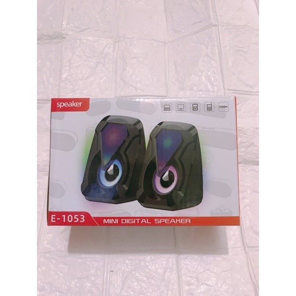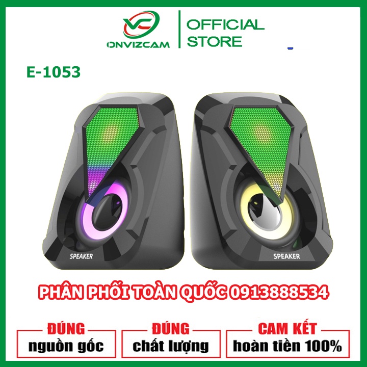 Loa vi tính cắm nguồn USB E-1053 để bàn cao cấp âm thanh siêu hay có đèn led 7 màu nháy theo nhạc Siêu đẹp