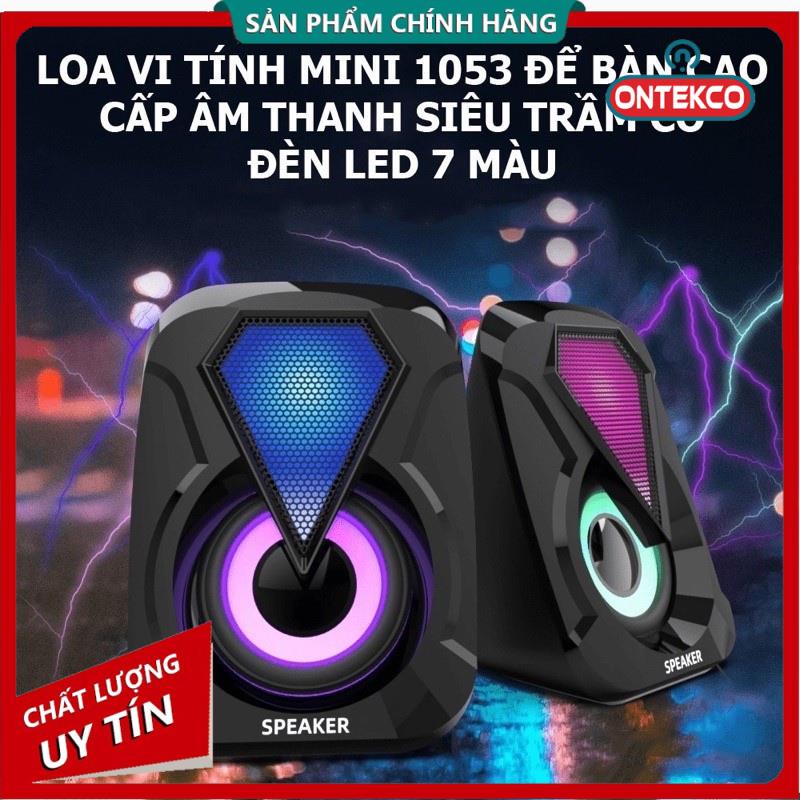Loa vi tính cắm nguồn USB E-1053 để bàn cao cấp âm thanh siêu hay có đèn led 7 màu nháy theo nhạc Siêu đẹp
