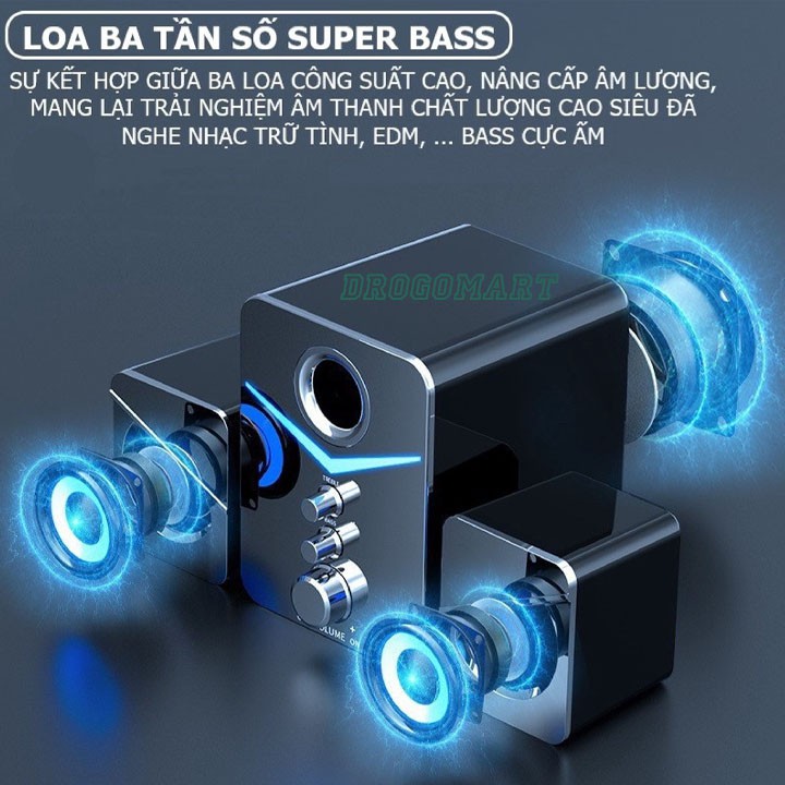 Loa vi tính để bàn MC D221 SUPER BASS cực đã,Có LED,Loa máy tính cao cấp cho laptop, Pc, Điện thoại