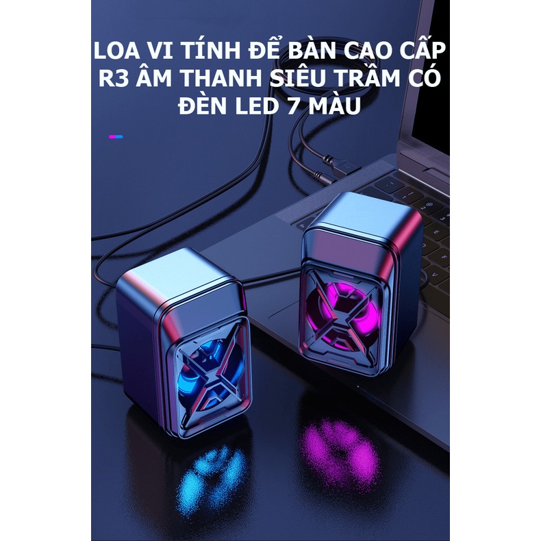 Loa vi tính để bàn nhỏ gọn cao cấp R3 âm thanh siêu trầm có đèn led 7 màu