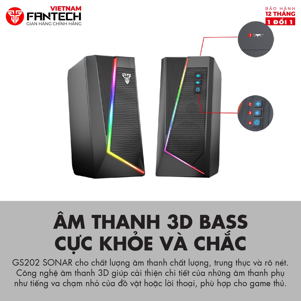 Giới thiệu Loa Vi Tính Gaming FANTECH GS204 RUMBLE LED RGB 7 Chế Độ Hỗ Trợ Kết Nối Bluetooth 5.0 và AUX 3.5mm