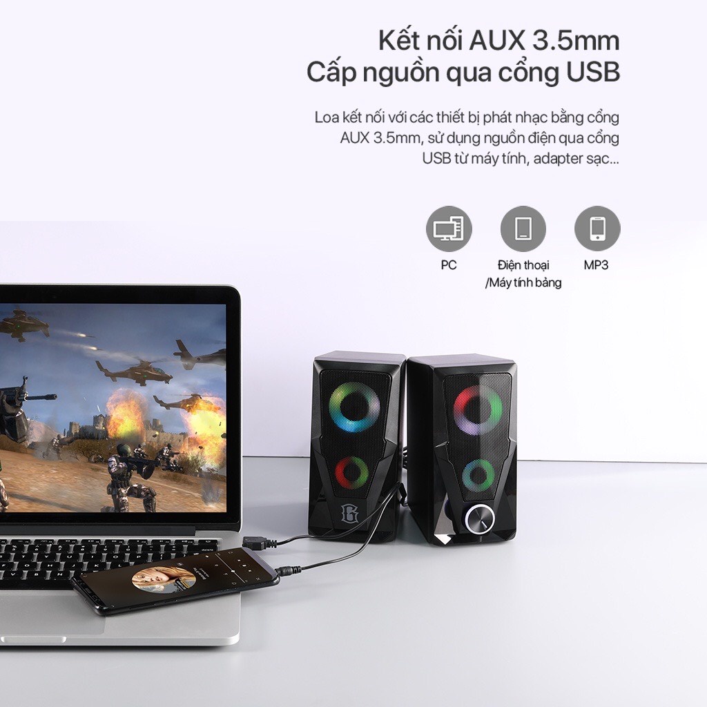Loa Vi Tính Gaming Gamen RS200 Công Suất 6W Hiệu Ứng Led Âm Thanh Mạnh Mẽ Kết Nối Máy Tính Laptop Điện Thoại