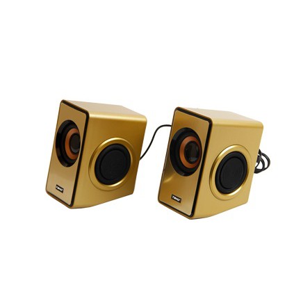 🔸. Loa máy tính để bàn mini 2.0 TAKO A760 thuộc dòng sản phẩm Loa 2.0 phục vụ nhu cầu làm việc và giải trí cá nhân của dân văn phòng. Loa được thiết kế sang trọng và độc đáo với gam màu vàng đồng và xám là chủ đạo, mặt trước loa được trang trí viền đen với màng loa màu cam tạo điểm nhấn