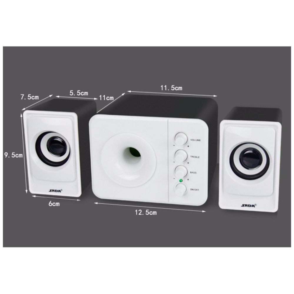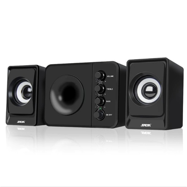 Loa 2.1 Có hệ thống nút điều chỉnh âm lượng Bass ; Treble ; On, OffSADA D-205 với thiết kế mới khá bắt mắt; bổ sung thêm loa tress giúp âm thanh thể hiện khá đầy đủ.