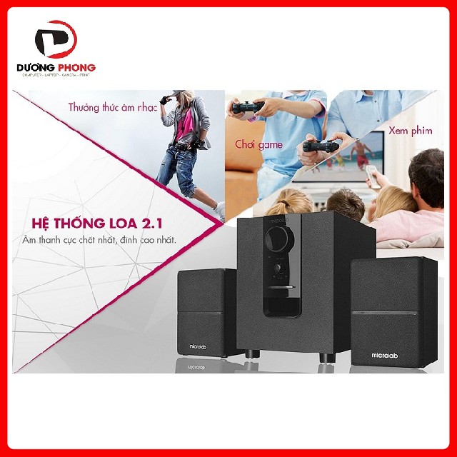 - Hệ thống loa 2.1 của loa vi tính Microlab M106BT/2.1 sẽ đem lại chất lượng âm thanh đỉnh cao. Sẽ không nằm trong việc nghe nhạc thông thường, giờ đây bạn có thể chơi game, xem phim một cách sống động như thật.