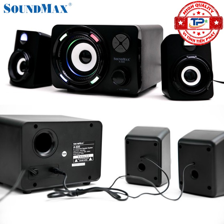 Loa Soundmax A-600 là dòng loa 2.1 kênh. Bạn sử dụng cho nghe nhạc, xem phim, hay chơi game. Loa có trang bị ngõ vào AUX, USB/TF với dung lượng hỗ trợ lên đến 128GB và ngày càng đáp ứng tốt nhu cầu nghe nhạc, xem phim hay chơi game, hỗ trợ định dạng MP3/WMA/WAV/FLAC.