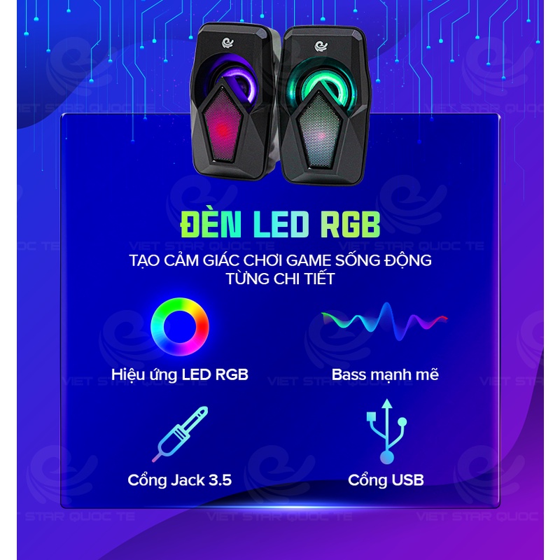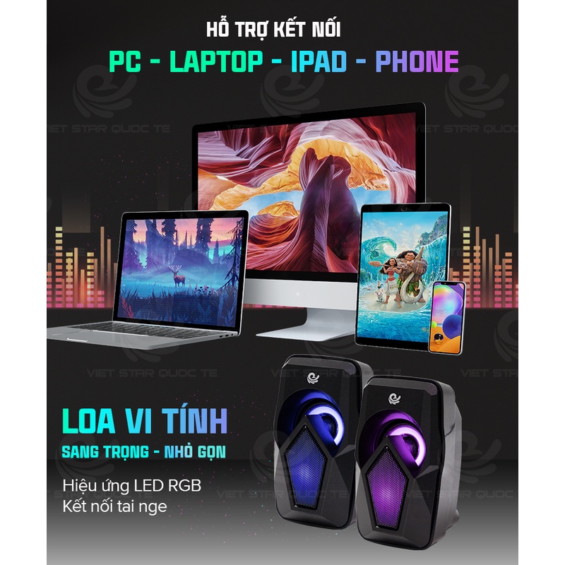 Loa vi tính VS-110, USB hiệu ứng LED RGB,kết nối tai nghe, thanh âm tuyệt đỉnh, công suất lớn, bảo hành 12 tháng