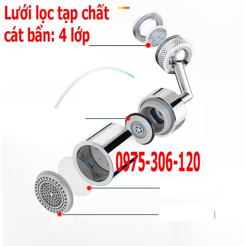 Giới thiệu [LOẠI 1] Đầu Nối Vòi Nước Thông Minh chất liệu đồng thau mạ crom- Đầu Nối vòi rửa chén vòi rửa mặt xoay 720 độ