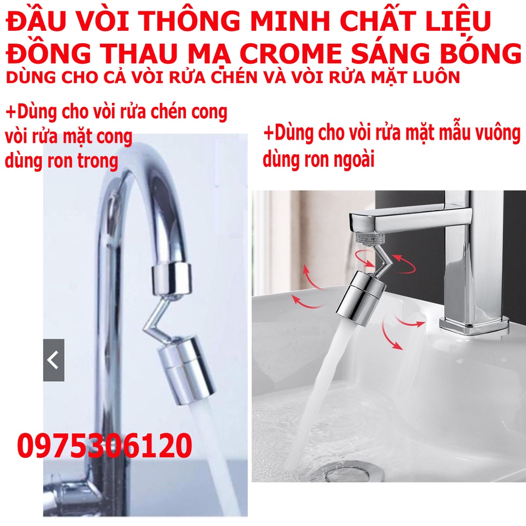 Nhà cửa & Đời sống > Dụng cụ & Thiết bị tiện ích > Chậu rửa & vòi nước || [LOẠI 1] Đầu Nối Vòi Nước Thông Minh chất liệu đồng thau mạ crom- Đầu Nối vòi rửa chén vòi rửa mặt xoay 720 độCòn hàng