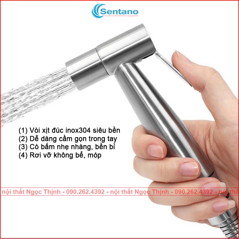 [LOẠI 1] FULL BỘ vòi xịt vệ sinh CHỊU ĐƯỢC ÁP LỰC CAO inox304 cao cấp thân vòi đúc SENTANO dùng DÂY RUỘT BỐ
