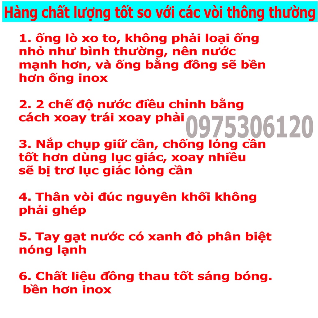 -Vòi đồng thau mạ crom, nước si dày phủ 5 lớp bao sáng bóng không nổ nước xi lấm tấm, vòi đồng thau thì lõi nước tốt bền, và nước mạnh, hàng này đảm bảo cho khách hàng dùng