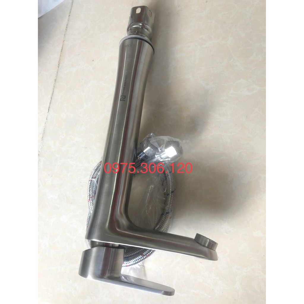 Giới thiệu [LOẠI 1-HÀNG ĐÚC] Vòi Rửa Mặt Lavabo Nóng Lạnh INOX 304 N302030cm và 2 dây nóng lạnh VÒI LA EO 30cm ĐẶT TRÊN BÀN ĐÁ
