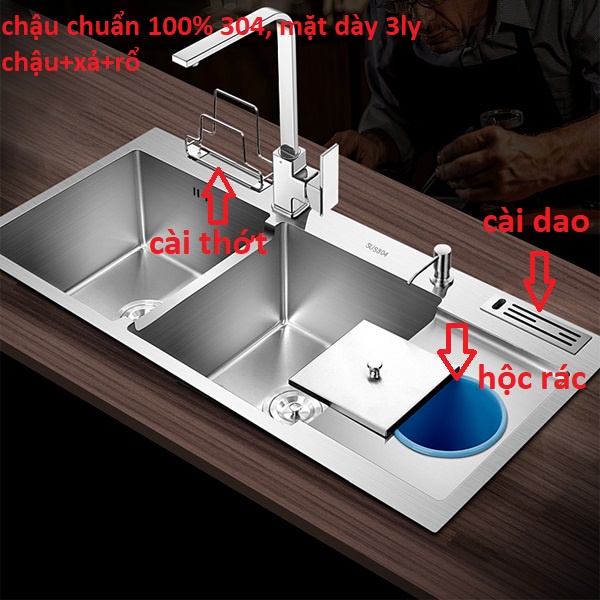 Giới thiệu [LOẠI 1-MẶT DÀY 3LY] Chậu Rửa Chén Bát INOX SUS 304 N3 10048 NA.GRAND HÀNG CAO CẤP NHẤT HÀNG BAO XÀI