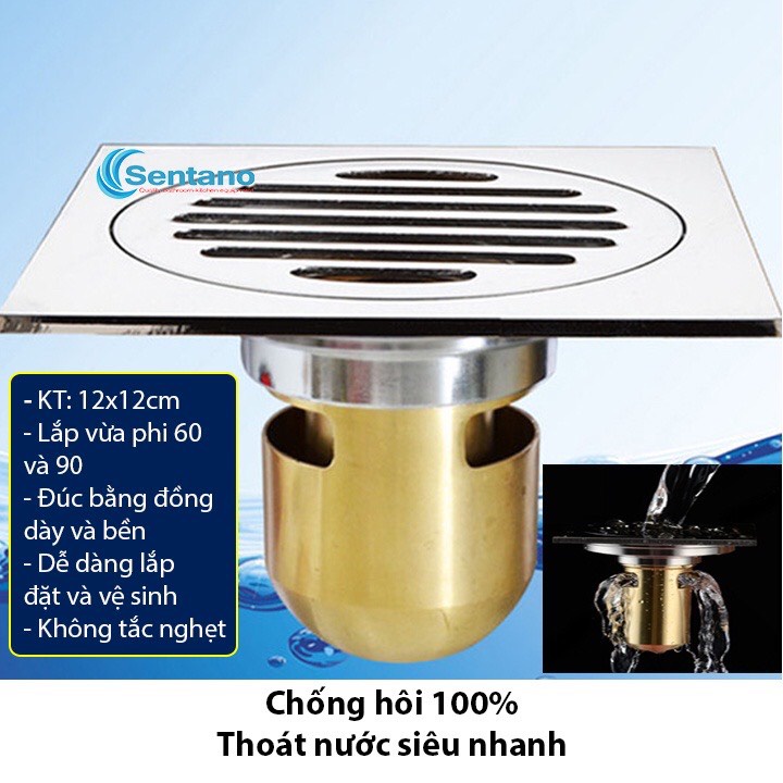 Giới thiệu [LOẠI 1] Phễu thoát sàn hố ga SENTANO LR-04 CHỐNG HÔI TUYỆT ĐỐI đúc dày nặng bằng đồng cao cấp thoát nước nhanh