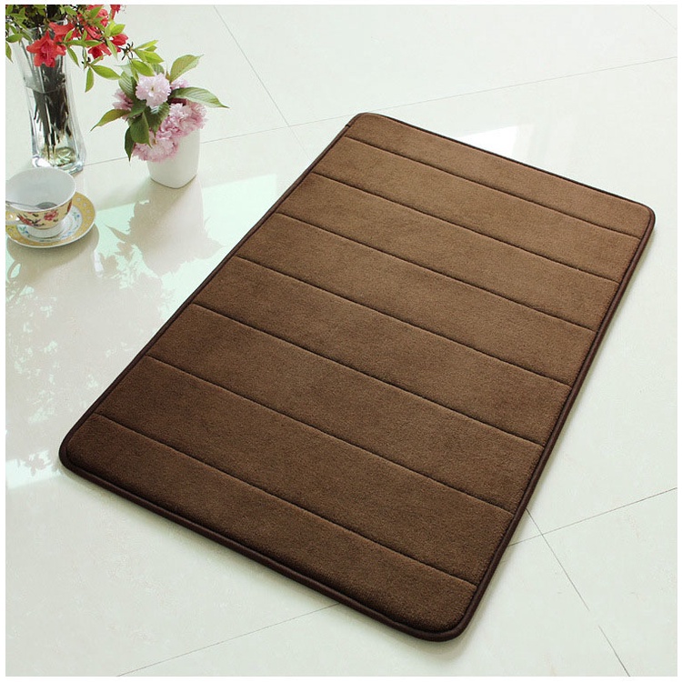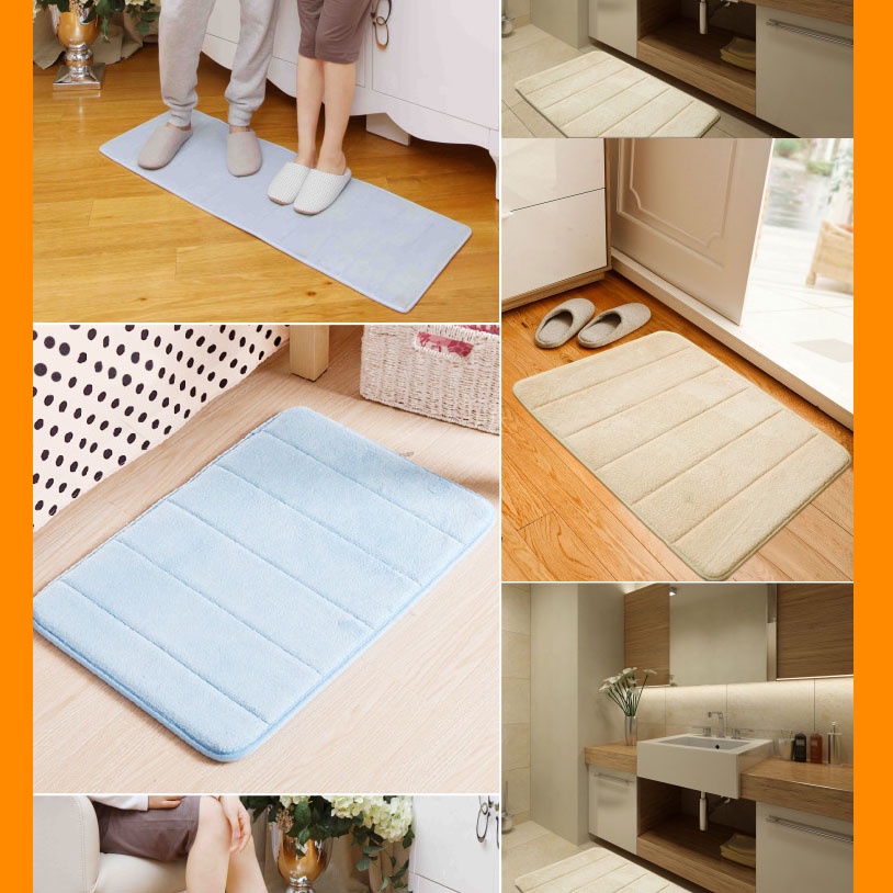 - Bề mặt thảm được làm từ lông nhung san hô, mềm mại và thoải mái, đáy latex chống trượt, lớp lót bên trong là xốp cao su non, xốp cao su non này khác với thảm phòng tắm khác, dễ vệ sinh hơn và sẽ tạo khuôn theo hình dạng cơ thể cá nhân, vì vậy thảm trải sàn này có cảm giác thoải mái và mềm mại hơn.