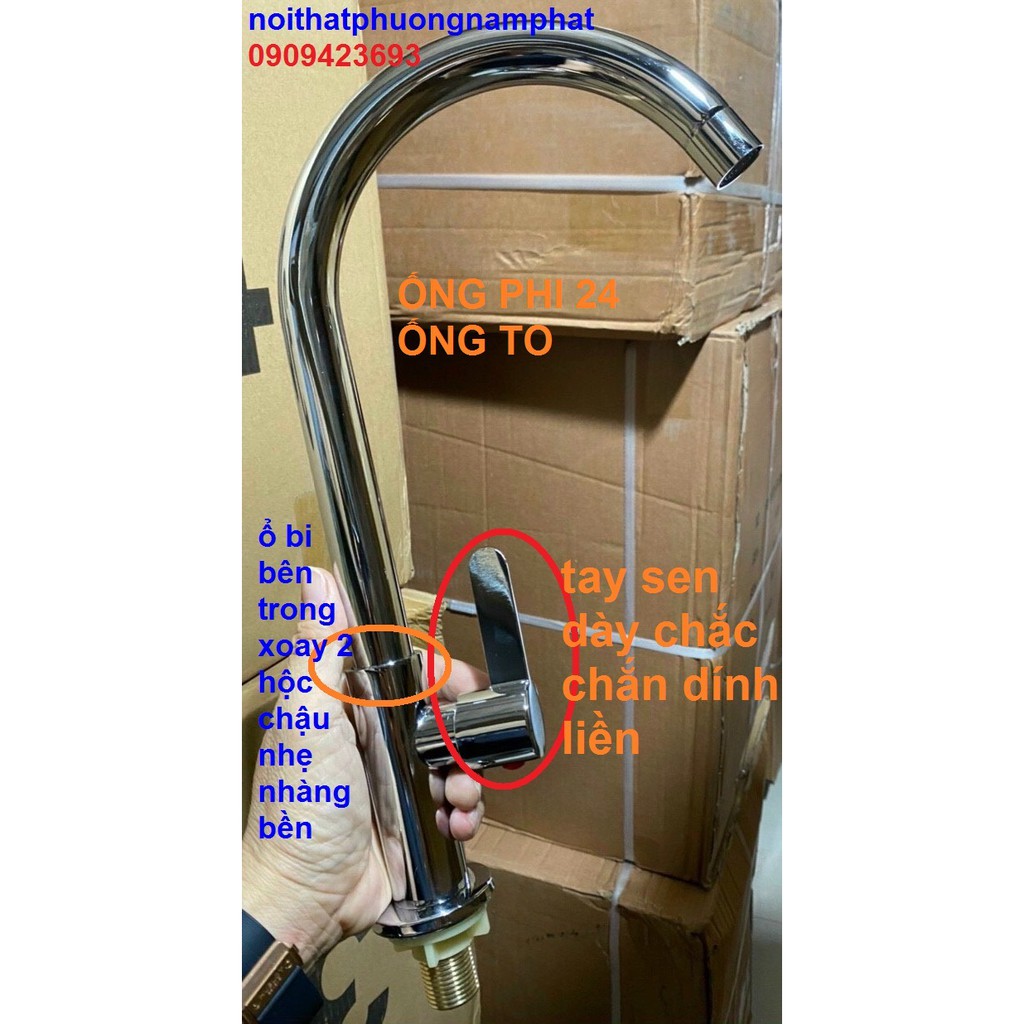 vòi cấu tạo cổ bi bền không bị lỏng cần khi quay trái quay phải, không cần lục giác, xoay trái phải dễ dàng