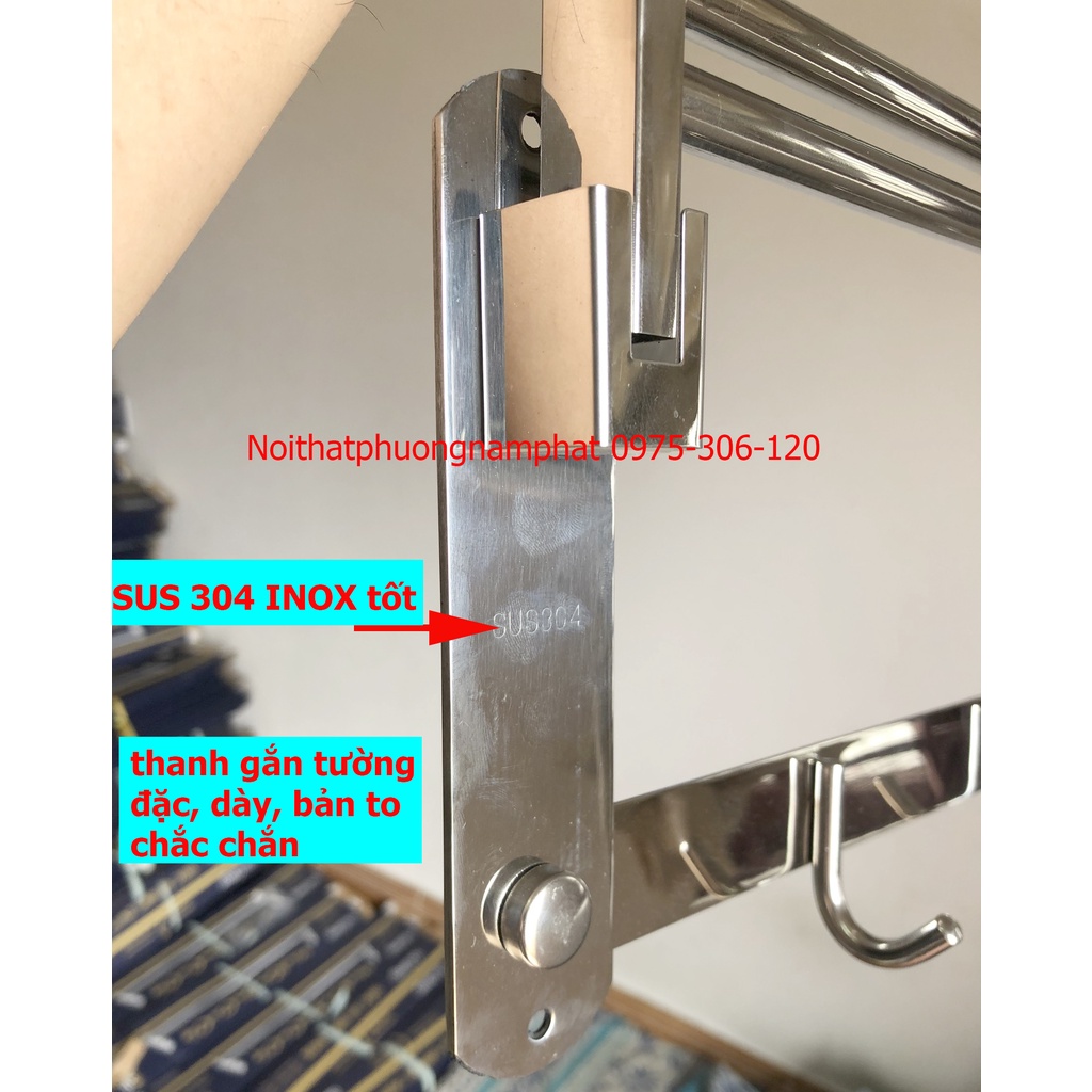 -Chất liệu chuẩn 100% inox SUS 304 Cao cấp: cam kết không han gỉ, khi ta treo khăn ướt không sợ những vết han dính vào khăn tắm, nếu mua những inox thường 201 dùng được 1 tháng sẽ bị han gỉ, những vết gỉ sắt sẽ bám vào khăn tắm