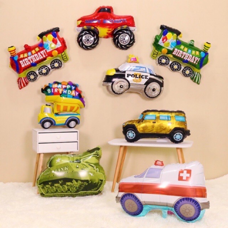 các loại bóng xe ô tô, máy bay trang trí sinh nhật cho bé size 80cm siêu to: xe cảnh sát, xe tăng, xe ben, xe tàu hoả, xe bus, xe cứu thương, máy bay, xe cứu hoảInbox cho shop để được tư vấn kỹ hơn ➥ Nếu khách muốn mua nhiều sản phẩm thì có thể nhắn cho shop tạo combo khách đặt cho dễ nha
