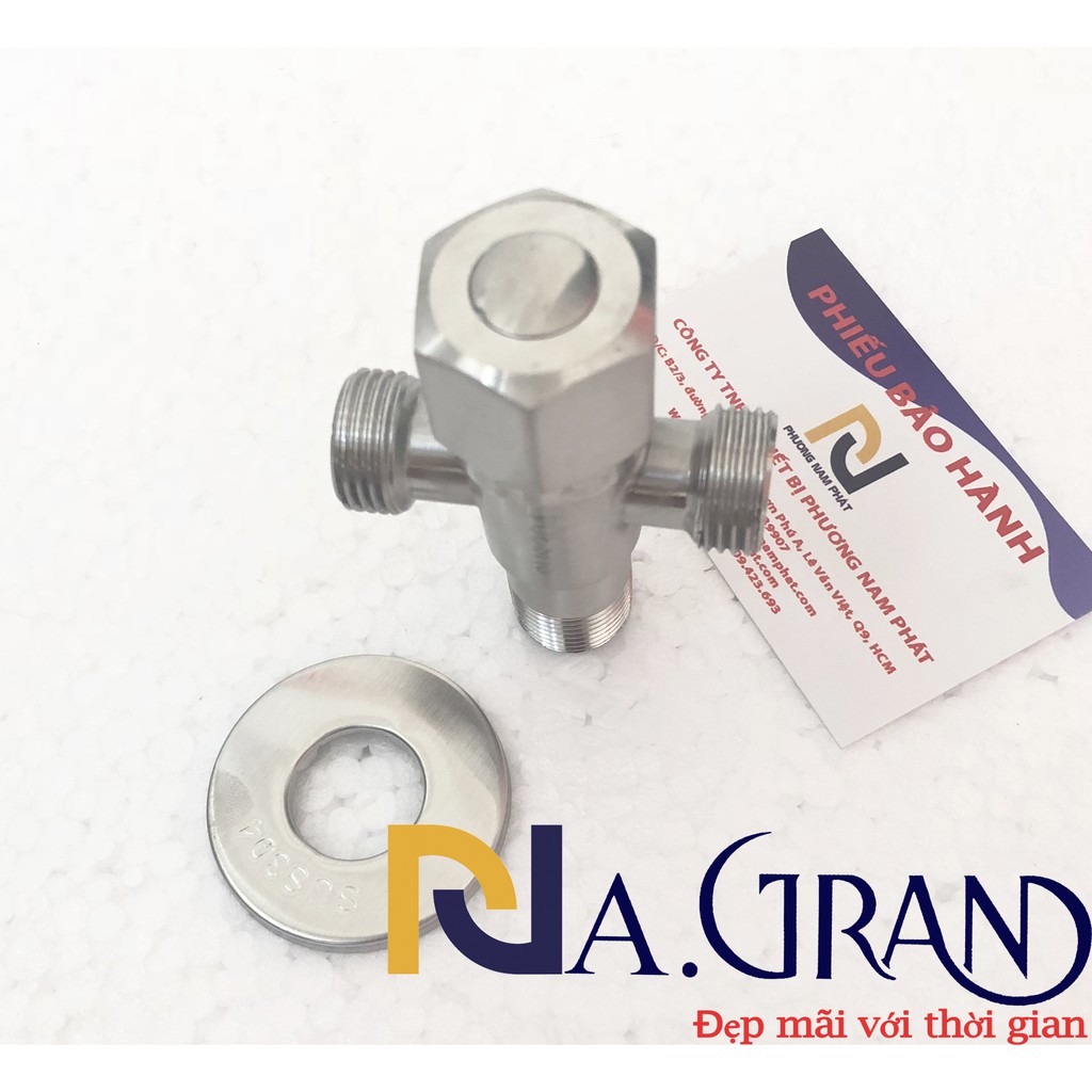 {LOẠI CAO CẤP CÓ KHÓA} Van Chia Nước cho vòi xịt vệ sinh và bồn cầu inox 304, van giảm áp, T CẦU BA NGÃ CÓ KHÓA