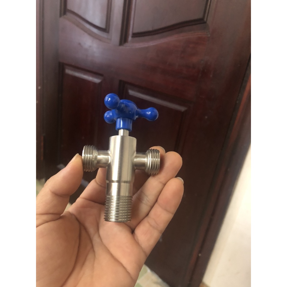 {LOẠI CAO CẤP CÓ KHÓA XANH} Van Chia Nước cho vòi xịt vệ sinh và bồn cầu inox 304, van giảm áp, T CẦU BA NGÃ CÓ KHÓA